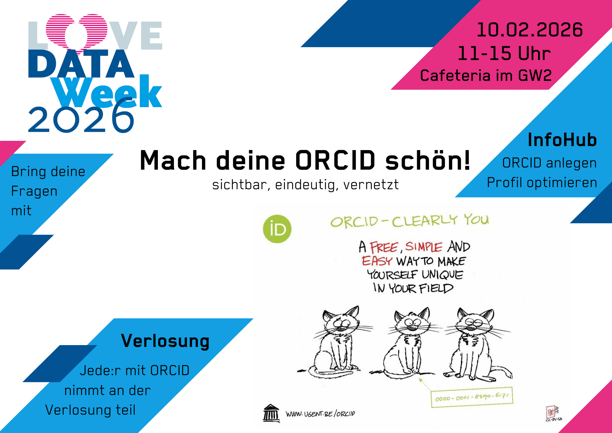 Im Rahmen der Love Data Week 2026 laden wir herzlich zum InfoHub „Mach deine ORCID schön!“ ein. Vor Ort unterstützen wir dabei,